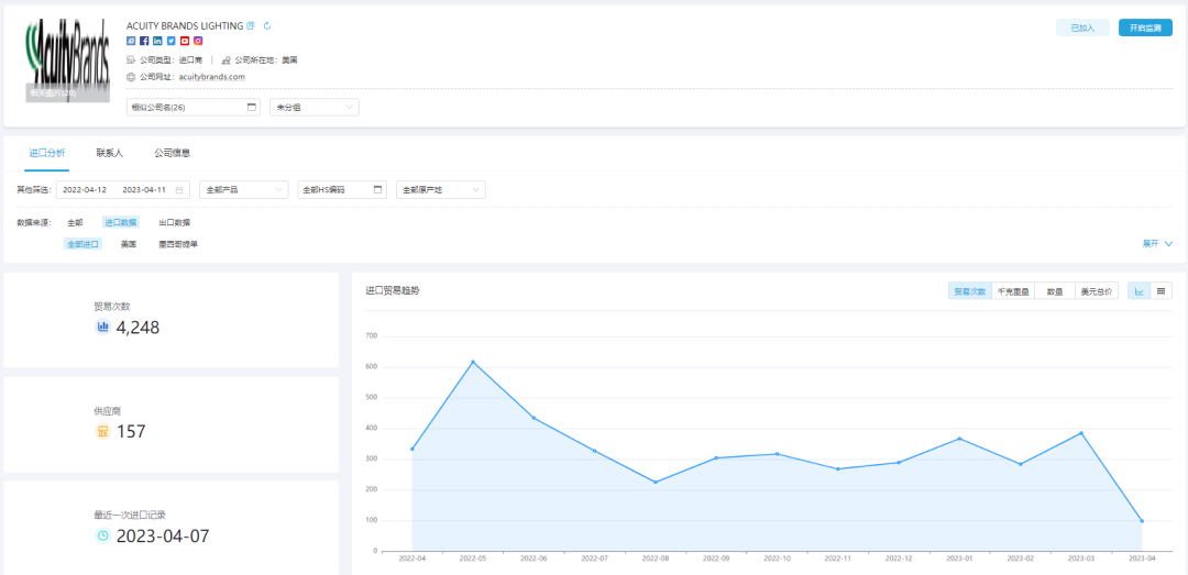 凯发K8外贸通可以查询进出口商的详细贸易情况,外贸员可以根据自己在展会上跟客户分析的内容,进行核对,分析客户的实力,摸清客户的底。