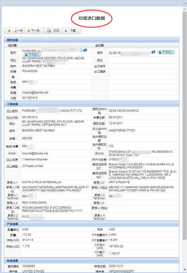 凯发K8海关数据系统中印度海关数据每月更新一次,包含了买卖双方信息、货物信息、运输信息,帮助您分析采购商找谁采购的,采购什么样的产品,采购的数量、重量和采购周期,同...